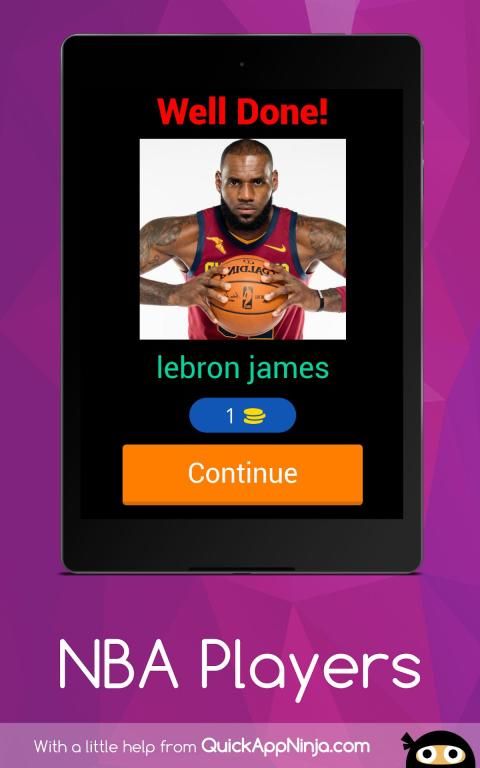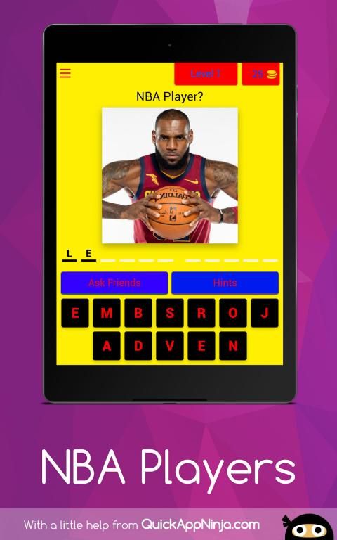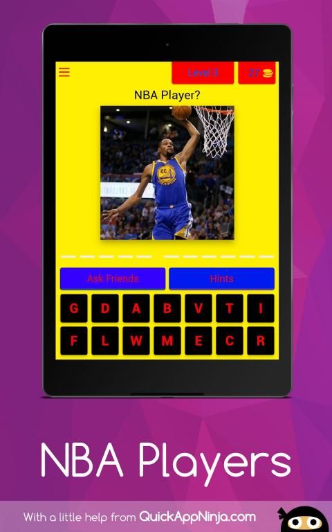NBA - An up type picture guessing basketball app filled with all your favorite NBA players including Allstars and all the legendary NBA players who made Basketball the trademark game it is today and the leading NBA players in the NBA season shining right now.