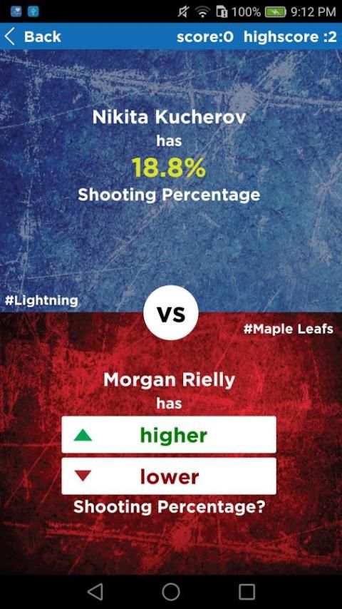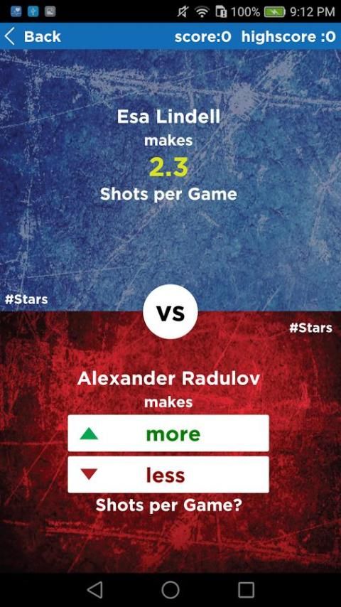Dalam Trivia Hoki ini yang didasarkan pada campuran NHL Trivia dan lebih tinggi atau lebih rendah Permainan (higherlower game), Anda dapat memperoleh poin dan koin, membandingkan statistik pemain NHL, yang bermain di 31 tim NHL dari Baltimore Orioles ke Washington Nationals.