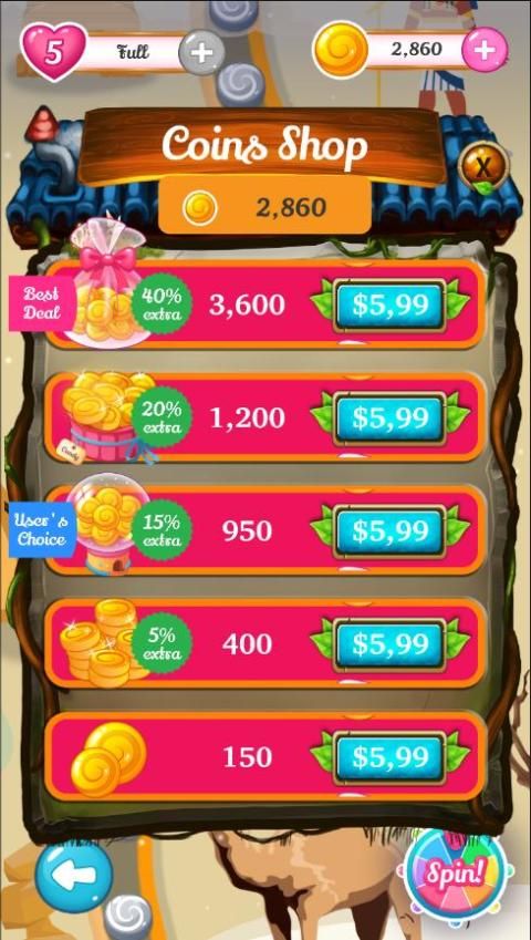 - Match 5 candy follow I, T, L shape untuk membuat permen spesial terbaik, yang bisa menghancurkan semua permen dengan warna yang sama, kamu hanya menukar dengan permen apapun