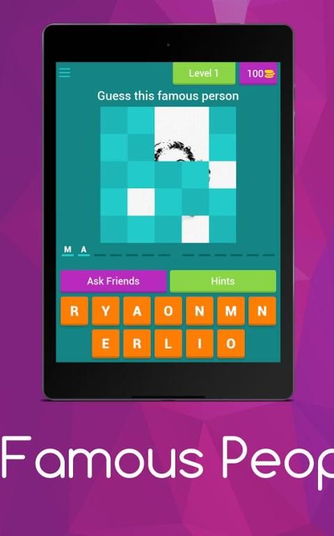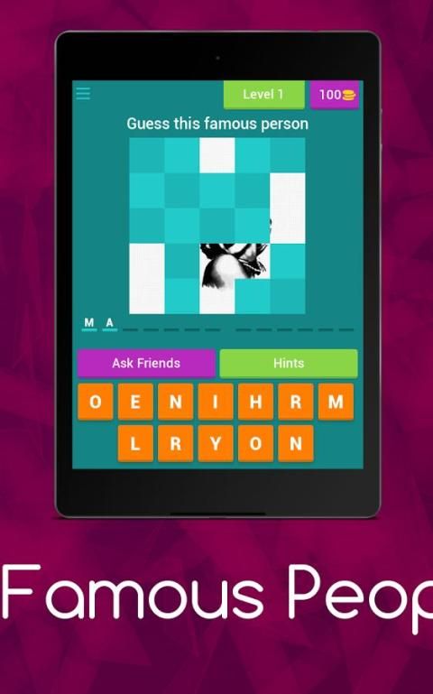 permainan ini adalah untuk menebak dan nama orang di belakang ubin. Orang di belakang ubin adalah orang-orang terkenal, selebriti dan orang lain yang banyak memberikan kontribusi kepada dunia, untuk teknologi kami dan berdampak masyarakat kita. Jika Anda ingin tahu siapa adalah orang-orang terkenal di belakang ubin, selebriti terkenal yang Anda cintai, ilmuwan terkenal di sekolah dasar Anda, memainkan game ini untuk membuka wajah. Main sekarang!
