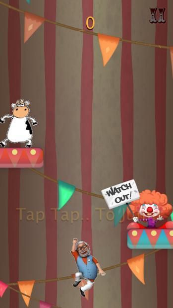 The main character of this Game does a funny acche din dance while you tap him through the obstacles.