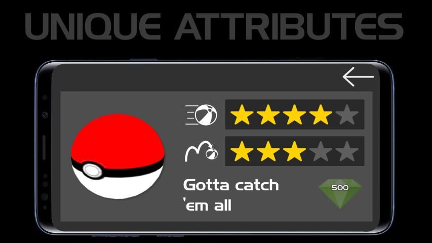 Setiap bola memiliki atribut khusus: roll, kecepatan, kekuatan lompat, gaya bouncing dan gesekan ... Mana yang lebih baik? Yah, itu tergantung pada refleks dan kebiasaan Anda, coba sendiri!