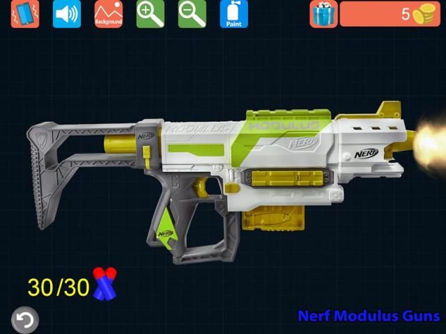 Di Nerf Modulus Guns, Anda dapat menggunakan menu Paint untuk melukis senjata nerf sesuai warna pilihan Anda. Ada banyak warna untuk Anda lukis di pistol Toy. Buat senjatamu sendiri. Bawa iklan senapan Nerf Anda ke teman-teman Anda, sehingga mereka dapat melihat seberapa bagus Anda.