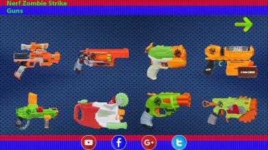 Semua Zombie Strike Nerf Guns yang terkenal seperti Sledge Fire, Double strike, Fuse fire, Ricochet, Ripshot, Sling Fire, Flip Fury, Doominator, Clampdown, RevReaper, Ripchain, Z-Bomb, Zombie Machete, Strikeblade, Z-Bat, DreadShot, Extinguisher, SplatterBlast, Abolisher ZR-800, Blaster Blowdart, Brainsaw, Clampdown, Clear Shot, Crosscut .. semuanya disimulasikan dalam game.