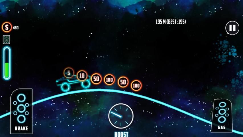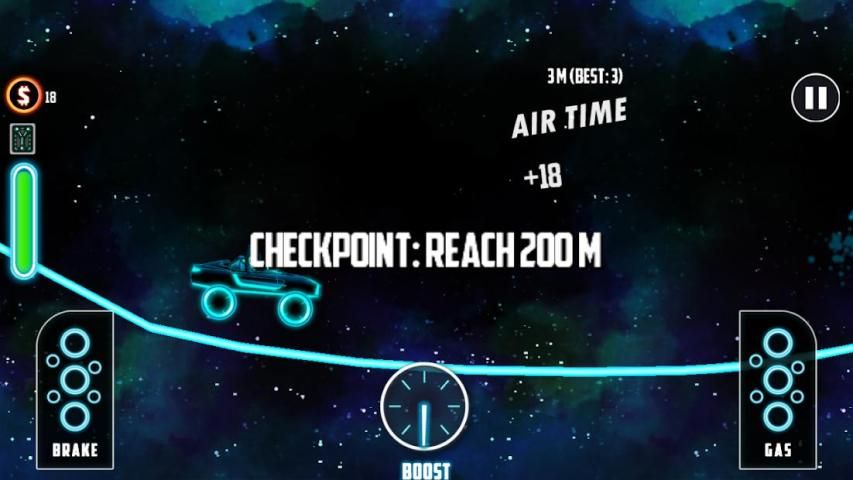Pick your favorite NeuTron Hill Climb car and enjoy the ride throughout lots of neon mountains and hills.