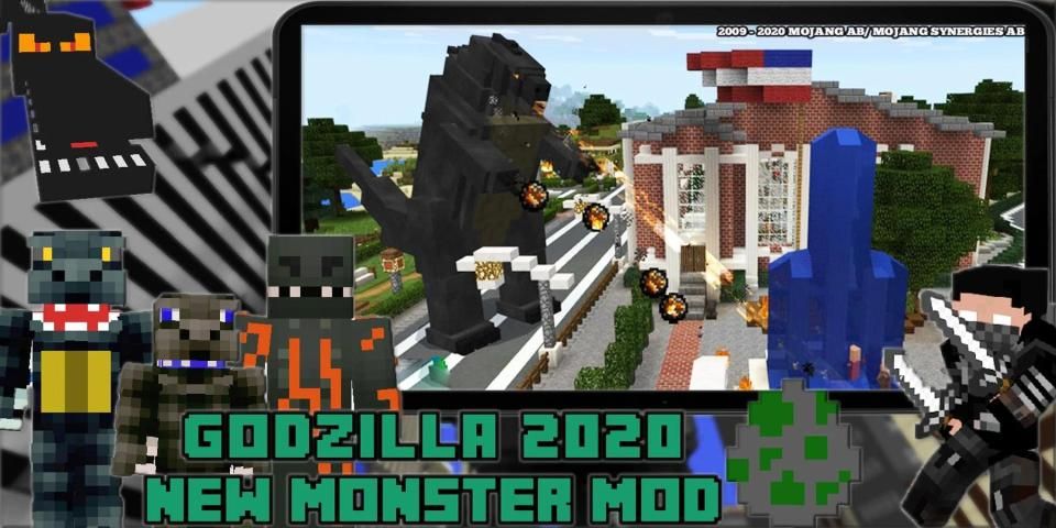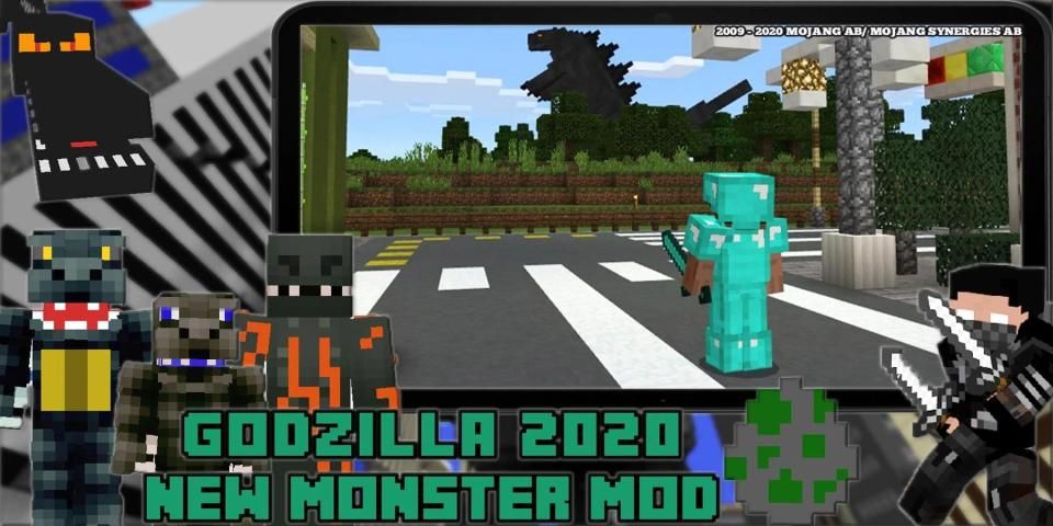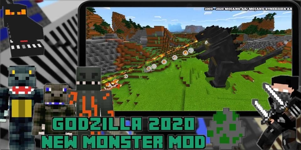 Mod pertempuran monster dengan kulit Godzilla Hensei dan peta survival pak 2020 untuk game mcpe kerajinan Anda, berisi 3 paket mod gratis dalam aplikasi.