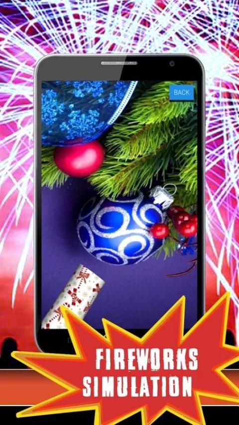 Kembang api 3d Tahun Baru di telepon sekarang dari pesta dengan suara petasan dan kembang api.