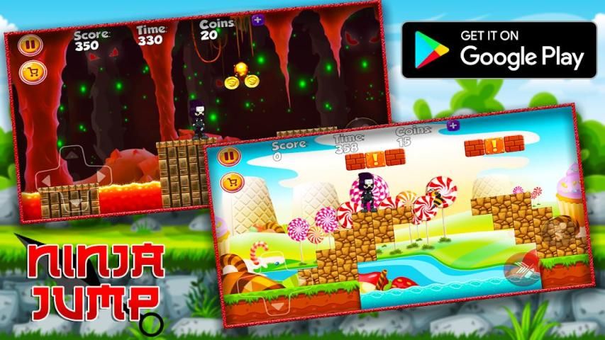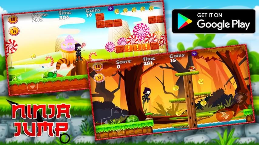 Dalam Ninja Jump: The Assassin Samurai Adventures Game, Ninja kecil harus berjalan sepanjang jalan untuk mengumpulkan koin dan power-up untuk bertarung dengan para bos.