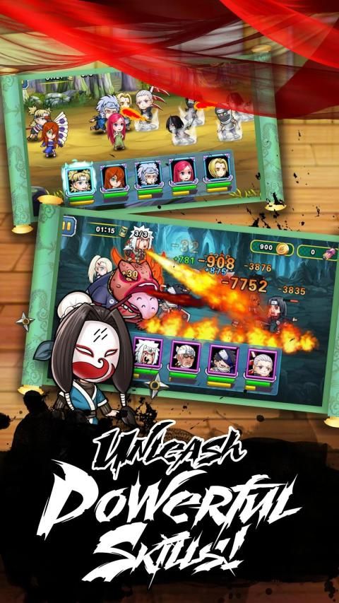 • Over hundred Ninjas with different skills to form your own unique team of five!
