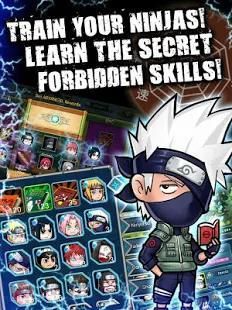 Lebih dari 50 shinobis terkenal Ninja pahlawan! prajurit Ninja adalah pejuang jarak dekat yang juga tangki untuk ninja lainnya. Sebuah kuat Ninja Rogue dengan serangan jarak jauh dan ninjutsu mematikan seperti tsunami. Hanya satu tekan, shinobis akan beraksi untuk membawa keluar kekuatan terbesar.