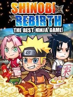 Ninja Rebirth adalah permainan ninja-bertema yang dapat Anda bermain secara gratis. Mengumpulkan semua mata uang dalam game untuk membantu Anda melatih Ninja. Ninja Rebirth memiliki berbagai mata uang - Diamond, Arena Coin yang bisa dari Ninja Perang arena, Ninja koin, Guild koin dan Shadow koin yang dapat diperoleh dari arena bayangan pertarungan. Semuanya dapat dikumpulkan dari setiap pertempuran yang berbeda, dan dapat ditukar dengan barang-barang, bahkan shinobis dan Ninja langka.
