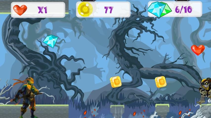 Memainkan game terbaru dengan kura-kura Ninja gratis untuk anak-anak. Coba ini game kura-kura ninja baru: Ninja Penyu Hero dan bantuan legenda untuk melompat dan menghindar kura-kura, mengumpulkan permata dan koin, menemukan semua ninja dunia, dan membuka Ninja baru dan pemain kura-kura. Raphael pemimpin, Leonardo yang lucu dan Donatello dan Michelangelo yang impulsif untuk kura-kura tapi semua orang memiliki kekuatan sendiri dan untuk mengalahkan Shredder