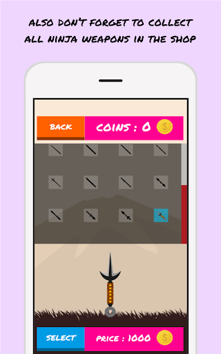 Lemparkan hingga setiap senjata ninja menancap di target. Tapi ingat, jangan sampai lemparan senjata ninja mengenai senjata yang lain yang telah tertancap di target, atau permainan akan kalah!