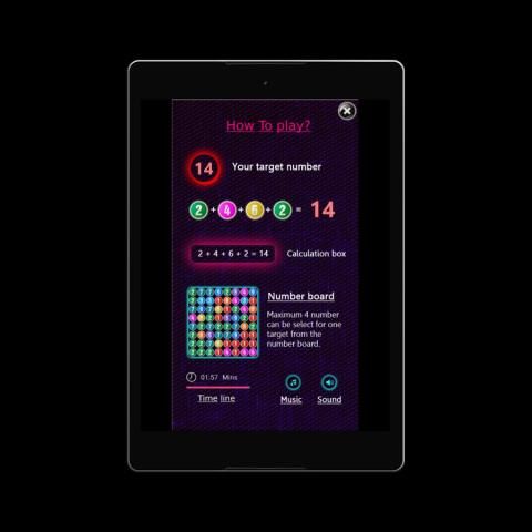Cukup membuat satu atau beberapa nomor dari papan dan membuat nomor ini sama dengan jumlah sasaran. Anda dapat memilih maksimal 4 angka dari papan nomor. Jika target Anda ingin menerjemahkan akan dihapus dari papan. Gunakan untuk menghapus semua nomor dari papan tulis dalam menentukan interval waktu untuk menyelesaikan permainan board ini.
