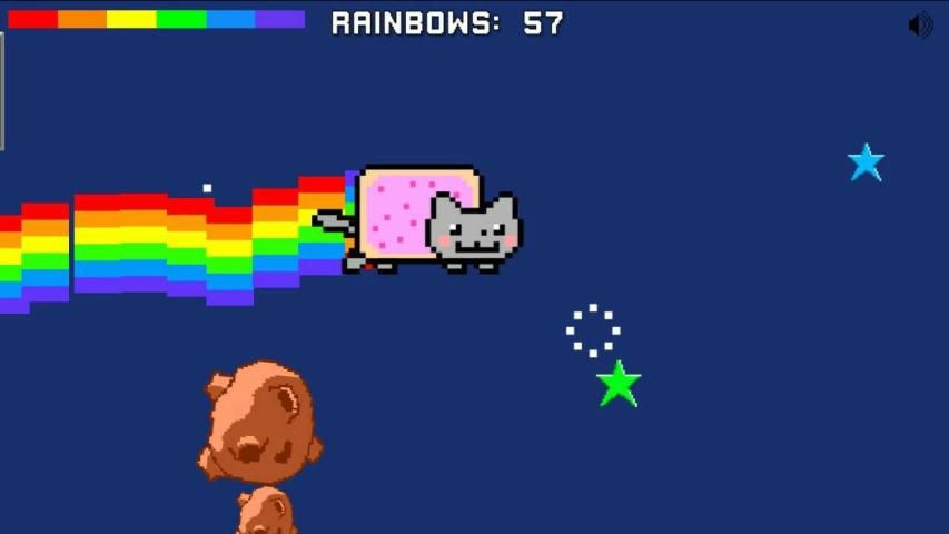Aiuta Nyan Cat volare e gettare quanti più arcobaleni possibile. Raccogli le stelle per avere più tempo per volare. Più grande è la stella, più tempo hai.
