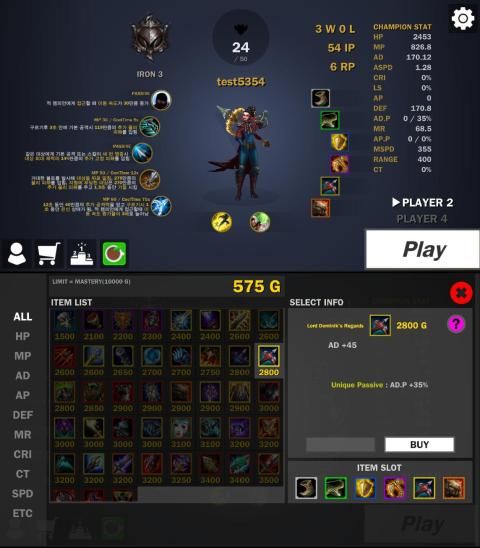 - 다양한 아이템과 주문을 변경해 나만의 챔피언을 만들어보세요.
