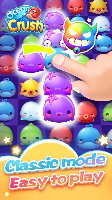 Ocean Crush as a casual puzzle game customized for everyone. Swap to match 3 or more same animals in a line to crush them. You can invite friends to play along with you. Competing with them and trying to get the highest score