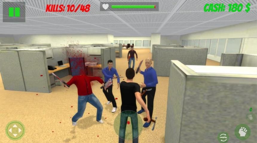 tempat kerja Anda telah menjadi lingkungan yang mematikan seperti rekan kerja Anda mencoba untuk membunuh Anda! Kutu buku dengan pisau, berduri tongkat bisbol, palu besar dan bahkan dengan penyerangan, mereka datang dari mana-mana! Anda memulai karir Anda dengan tongkat bisbol sederhana namun ketika Anda membuat jalan Anda up, Anda mendapatkan akses ke lebih mematikan jarak dekat senjata. Apakah Anda ingin menghancurkan kepala dengan palu? Atau tenggorokan slice kutu buku dengan pedang panjang? Mengapa tidak hanya mengirim kolega Anda ke langit-langit dengan granat! Waspadalah terhadap bos brengsek Anda, karena ia tidak mudah untuk mencatat sebagai bius kertas biasa.