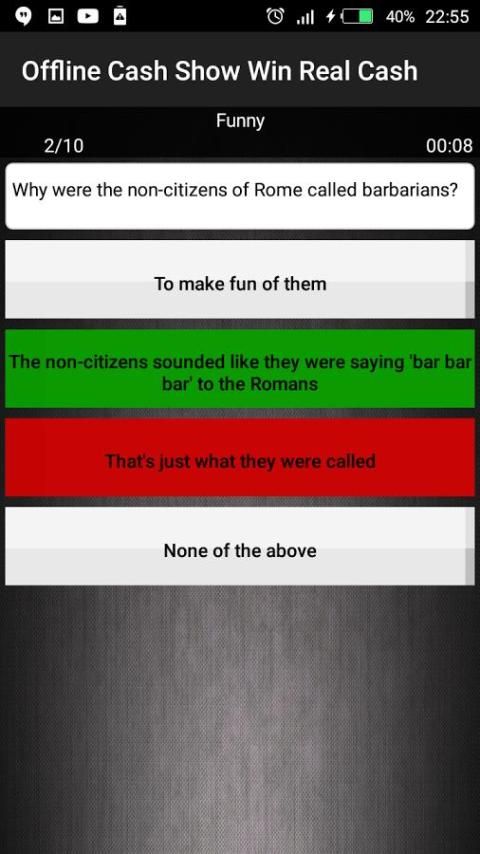 Nikmati pengalaman baru ini bermain acara Kas PERTANDINGAN Win secara offline nyata. Banyak pertanyaan untuk play..try menjawab terbaik Anda!