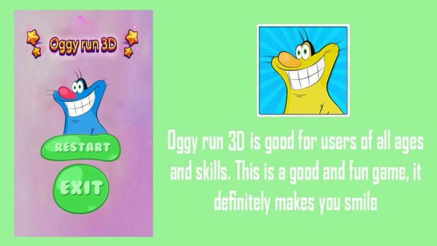 Oggy run 3D yang baik bagi pengguna dari segala usia dan keterampilan. Ini adalah permainan yang baik dan menyenangkan, itu pasti membuat Anda tersenyum.