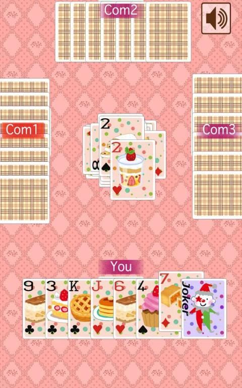 Permainan kartu “Old Maid” bermain dengan kartu yang menampilkan "Kue".