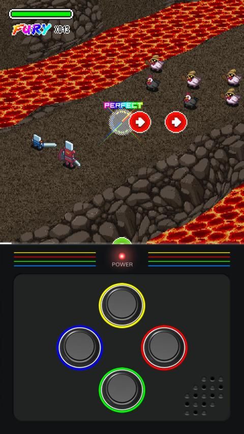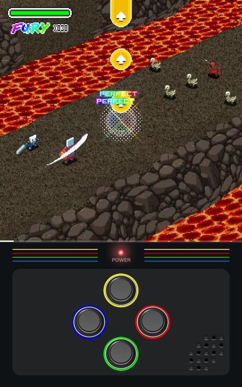 Apakah Anda pernah memainkan permainan ritme sebelumnya? Ya begini, tapi jauh lebih baik! Dengan setiap catatan, Anda bertanggung jawab atas keberhasilan pencarian dua pahlawan kami. Ayunkan pedang Anda ke ketukan trek chiptune dari Dubmood, Zabutom, Hello World, Yponeko, Le Plancton.