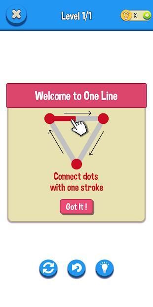 One Line is a simple yet challenging puzzle game, with one and only rule. Connect the dots along with all the lines to complete the puzzle using 1 stroke only.