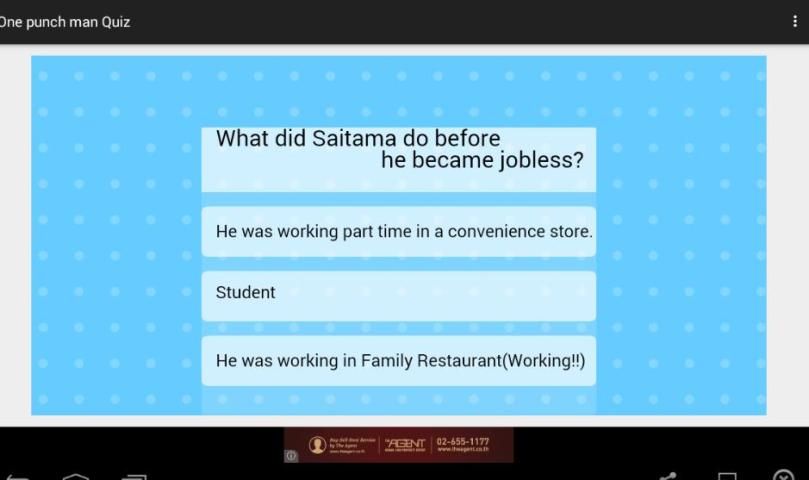 I'm glad to tell you that 10,000+ users downloaded One punch man quiz latest version on 9Apps for free every week! It is a wonderful app that amazes every player. This hot app was released on 2015-11-23. It is a very popular app on India now.