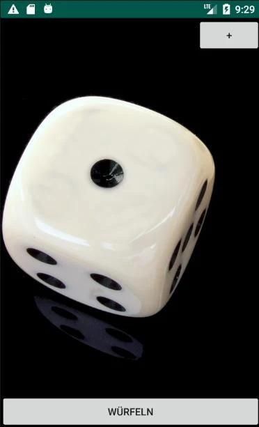 Die App simuliert einen simplen Würfel. Durch drücken der Taste "Würfeln" oder durch drücken des Würfel selber wird neu gewürfelt.