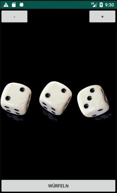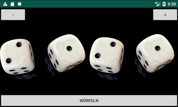 Es können mit den +/- Tasten einer oder mehrere Würfel eingestellt werden, die alle gleichzeitig gewürfelt werden.