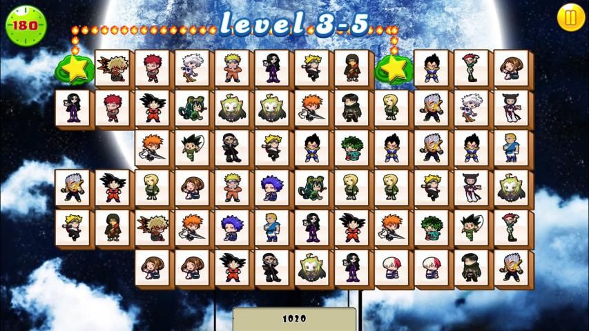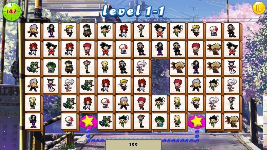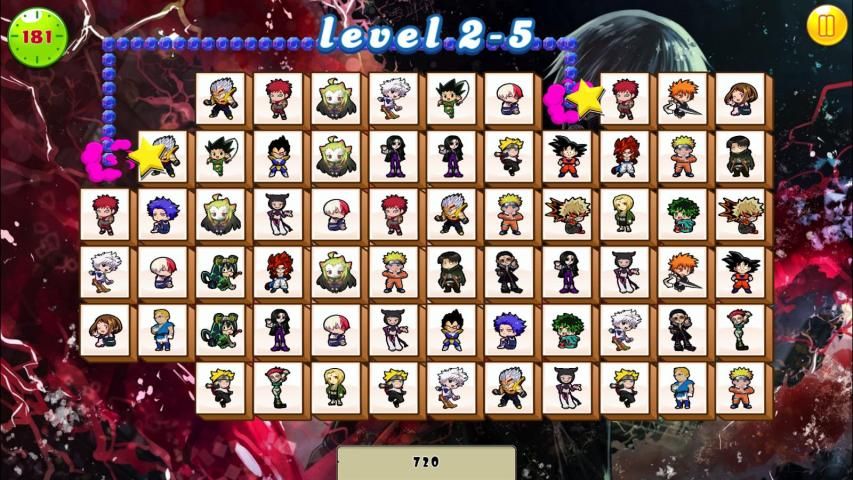 ✓ Hapus 2 anime dengan jenis yang sama yang dapat dihubungkan dalam 3 baris.