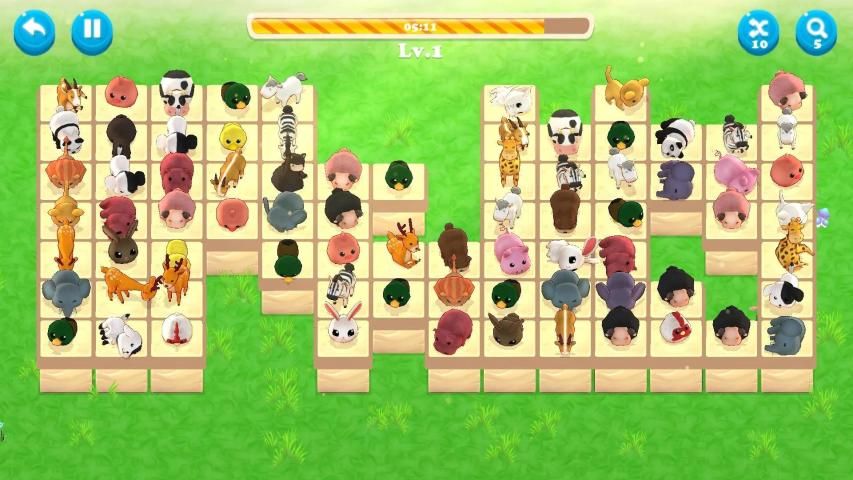 Dengan cepat mengenali dan Mencocokkan 2 Hewan dari jenis yang sama di jalur dengan tidak lebih dari 3 putaran.