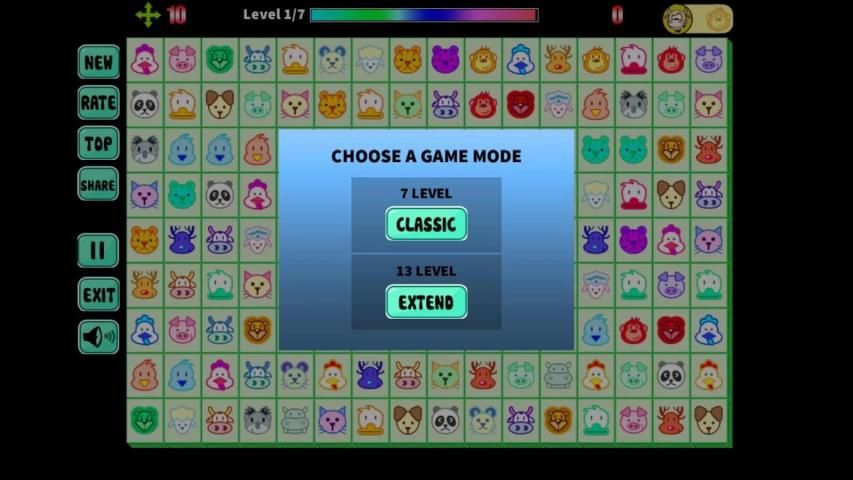 - Remove 2 animal with the same kind which can be connected within 3 lines.