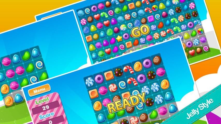 - Menakjubkan grafis, banyak jelly gaya seperti coklat, kue, buah, kue, halus jelly percikan animasi.