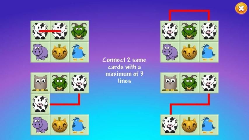 ✓ Link 2 hewan dengan jenis yang sama yang dapat dihubungkan dalam 3 baris.