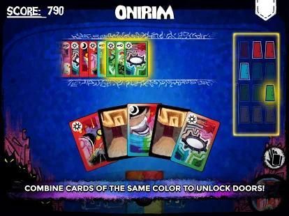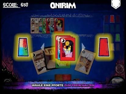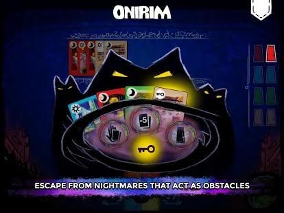 Onirim adalah permainan kartu solitaire. Anda harus bekerja melawan permainan untuk mengumpulkan delapan pintu oneiric sebelum dek habis. Anda dapat memperoleh kartu pintu baik dengan bermain kartu dengan warna yang sama tiga putaran berturut-turut atau dengan membuang salah satu kartu kunci Anda kuat ketika pintu muncul dari dek. Dalam kedua kasus, Anda akan harus memutuskan penggunaan terbaik dari masing-masing kartu di tangan Anda dan hati-hati bermain di sekitar Mimpi buruk. Kartu-kartu yang tersembunyi di dek dan akan memicu dilema yang menyakitkan ketika ditarik.