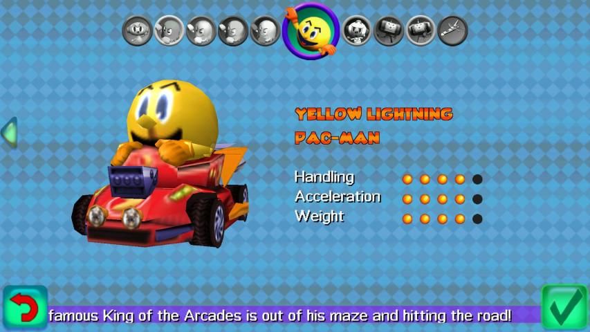 perlombaan ini! Ikon arcade dibutuhkan untuk jalan terbuka terhadap Namco teman yang terkenal, termasuk Dig Dug, Pangeran dari Katamari Damacy dan bahkan kapal Galaga! Menguasai teknik power-geser untuk terbang di sekitar sudut dan memotong kompetisi! Watch out untuk power-up, item bonus dan meningkatkan kecepatan untuk menang. Bertanding di garasi penuh mode yang akan menguji kemampuan karting Anda! Ras di multiplayer dengan gratis melawan teman-teman Anda melalui koneksi wi-fi lokal Anda! Sampai jumpa di lingkaran pemenang!