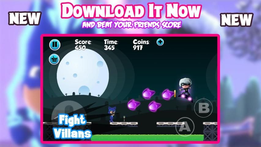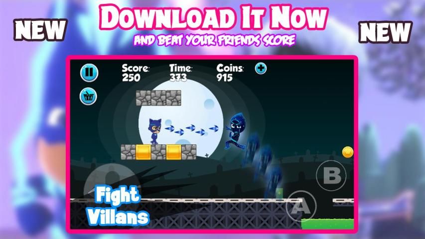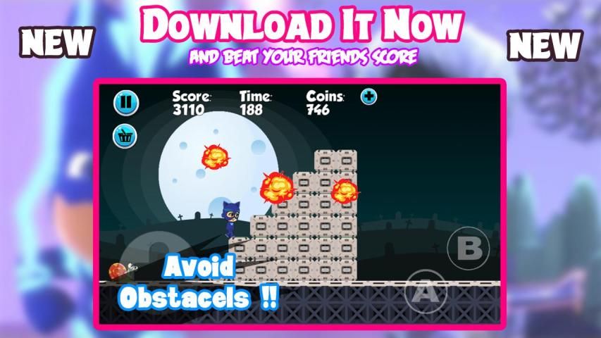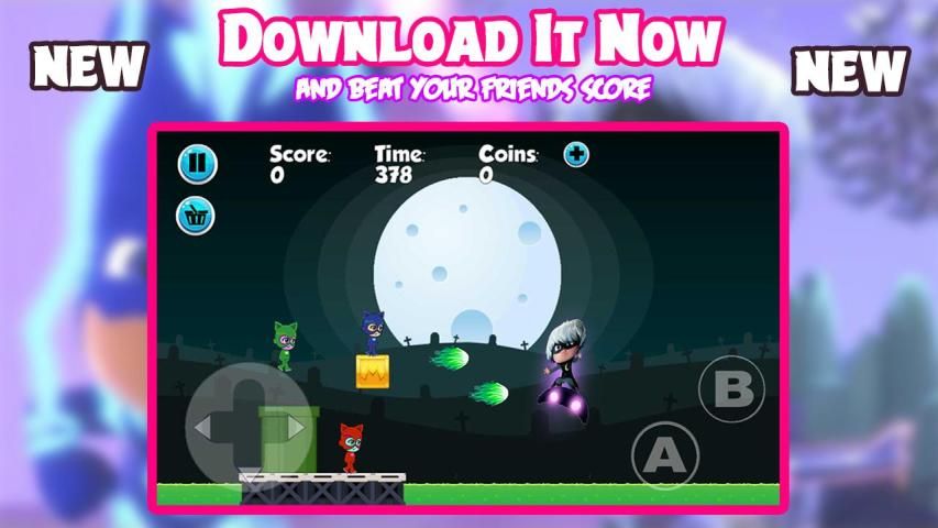 permainan bergerak Anda dengan kecepatan lebih cepat dan lebih cepat dari running.You perlu mendapatkan banyak dan lebih banyak koin di setiap tingkat. Anda dapat perdagangan koin untuk lebih banyak daya hingga tetap aman selama petualangan. PJ super Catboy setelah tiga anak-anak 6 tahun usia laki-laki muda dan wanita muda pahlawan Connor, Amaya dan Greg. Namun di malam hari pahlawan akan bergerak menuju menjadi Feline Catboy, Owlette dan Gekko