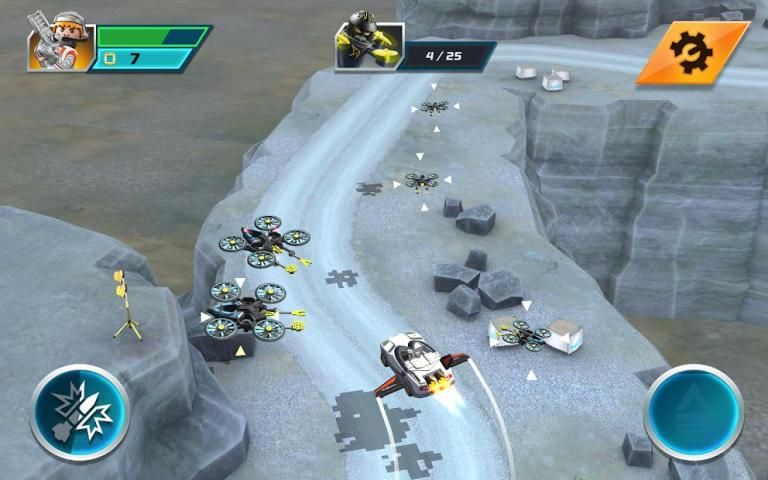Setiap kendaraan PLAYMOBIL Top Agents dilengkapi dengan dua senjata yang unik untuk menguasai, ditambah Mode Power yang pernah dikenakan akan mengubah kendaraan menjadi baru, negara tak terkalahkan dengan senjata tak terbatas! Mengalahkan drone membuat mereka menjatuhkan TECH yang dapat dikumpulkan untuk power-up setiap senjata ke max.
