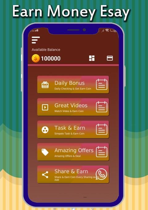 Try the Best Earn App - Get MONEY for watching videos earn money online, testing free services, giving opinions, endorsements,earn money app.New tasks and features updated daily so you never run out of Money Making opportunities earn money by watch ads and video.