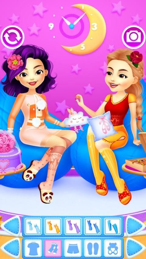 Agar merasa nyaman, letakkan beberapa bantal juga plush toys disekelilingmu. Ketika semuanya sudah siap, nikmati perbincangan seru bersama sahabat sejatimu. Kamu dapat memesan pizza, bermain game, mengirimkan pesan kepada teman-temanmu, mengomentari berita terbaru di halaman Facebook temanmu, membaca-baca majalah mode atau bergosip tentang teman maupun teman sekolahmu. Unduh dan mainkan saja game makeover baru dan menyenangkan ini di Android kamu secara cuma-cuma.