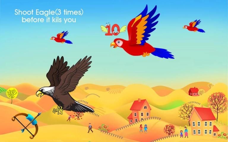 Kami membuatnya menarik dengan memperkenalkan elang di game.Shoot elang sebelum membunuh Anda. Seperti elang ini kuat Anda harus menembak tiga kali untuk membunuhnya.