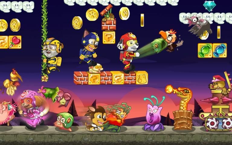 Platformer Paw Superhero permainan akan berjalan dan melompat untuk menghindari banyak hambatan, menembak dan melawan ninja terbang api.