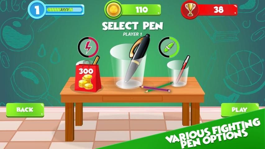 Pilih pena dan mulai pertarungan perkasa dengan satu, dua atau tiga lawan di atas meja. Gesek di layar untuk memukul pena lawan, mencapai koin setelah memenangkan setiap pertandingan, dan membuka pena Huger dengan penghasilan Anda.