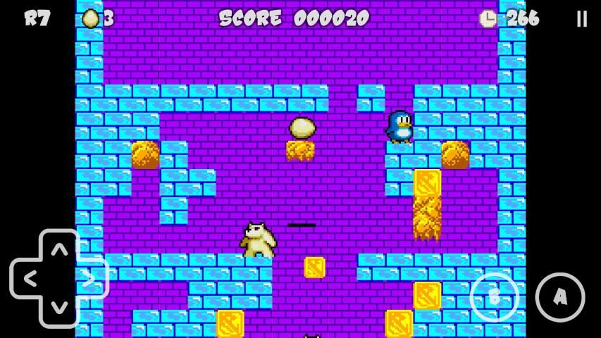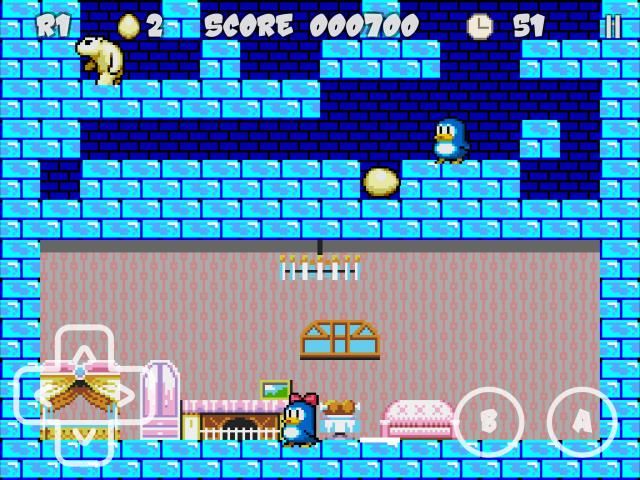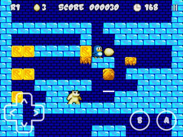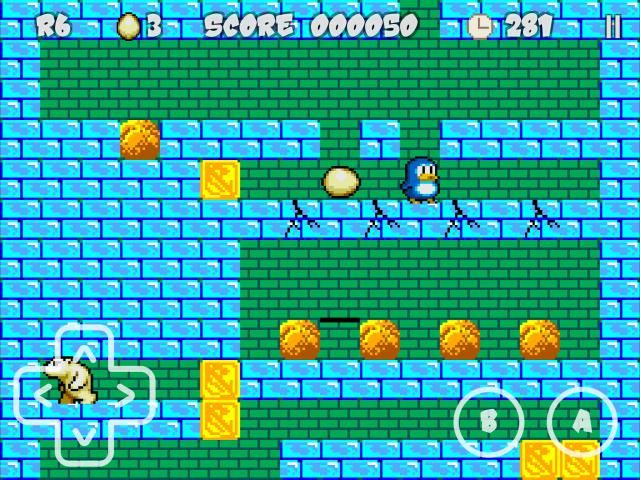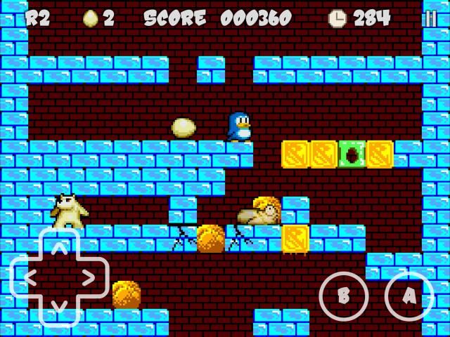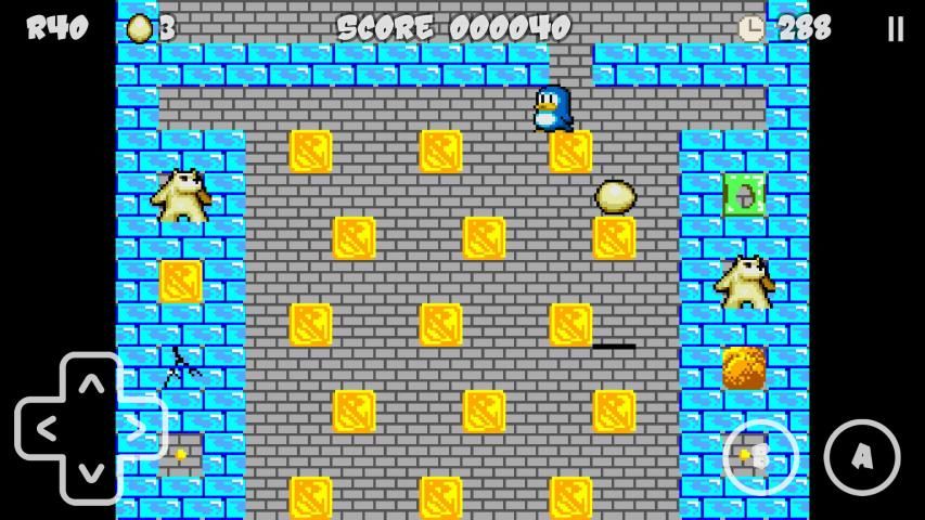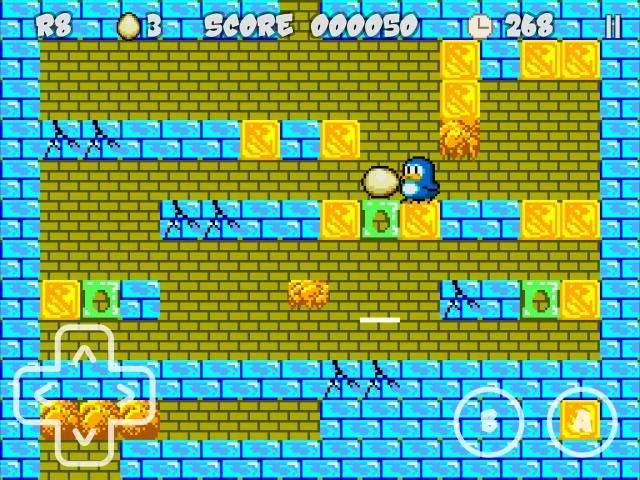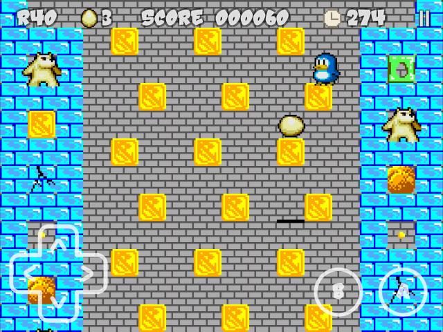 - penguin Anda dapat melompat 3 level, dan telurnya bisa jatuh 3. Ini buffered jika jatuh pada batu bata yang hancur atau menghilang.
