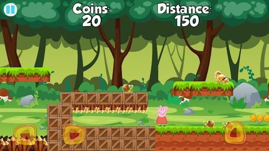 in Peppa Pig Adventure you should run and jump to keep playing, so you should not fall. In your road you will face The candyman, you should not touch it or you will die