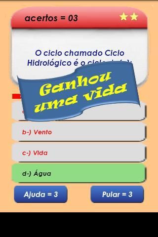 A cada 5 respostas certas consecutivas você ganhará uma vida como bônus, porém, a cada pulo ou ajuda solicitada, a contagem é zerada.