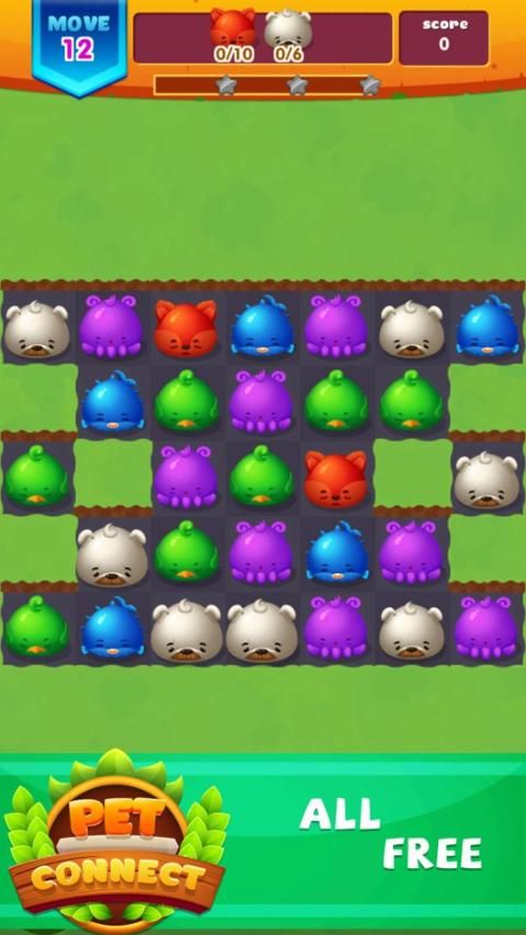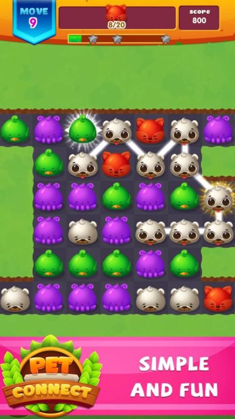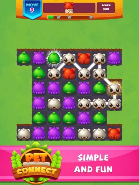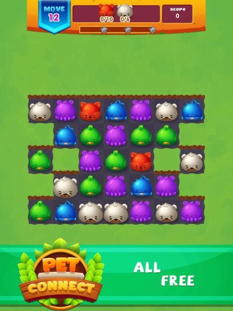 Come to Pet Connect: Match 3 Games, what is your mission? Very simply, touch and connect the same animals and make them disappear. You can connect them in any direction as long as they are next to each other, the more animals disappear, the higher the score you get.