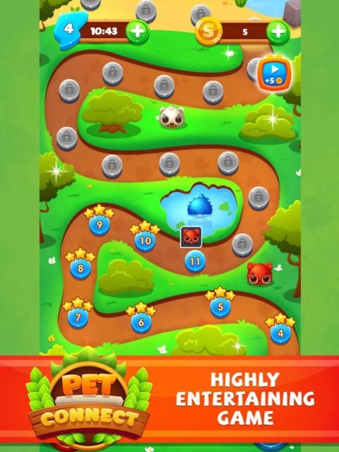 Datang ke Pet Connect: Game Match 3, apa misi Anda? Sederhananya, sentuh dan hubungkan hewan yang sama dan buat mereka menghilang. Anda dapat menghubungkan mereka ke arah mana pun selama mereka bersebelahan, semakin banyak hewan menghilang, semakin tinggi skor yang Anda dapatkan.