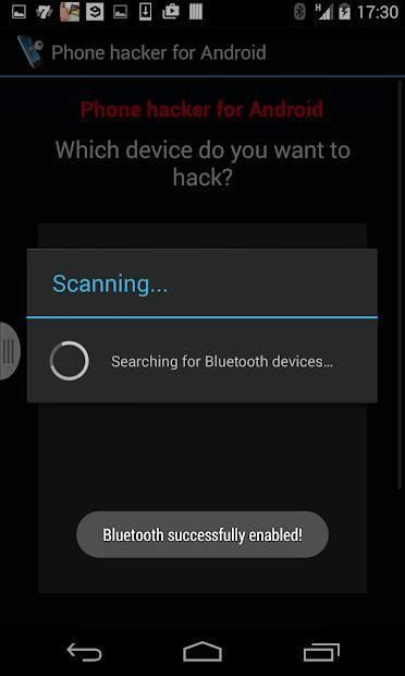 Phone Hacker simulator is a prank app which gives the impression that you can hack into other people's phones via Bluetooth. This prank app creates the illusion that it can hack into other phones or tablets which have Bluetooth activated. This phone hacker simulator doesn't actually do harm or break into other people's devices. But it's an awesome tool to impress your friends and with which you can have fun. It makes you look like a proficient hacker and a technical genius. This is a very delightful prank to play on your friends.